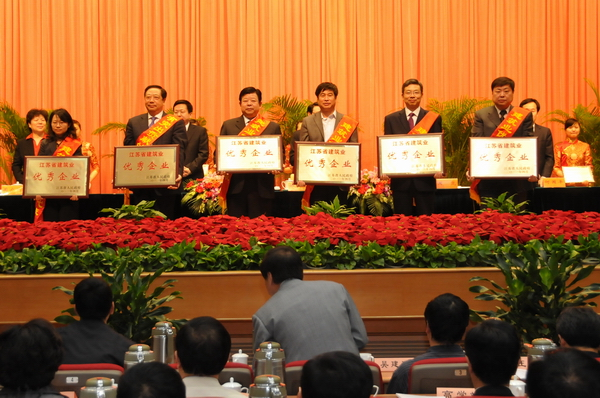 4月26日上午,在南京召開(kāi)的五年一次的江蘇省建筑業(yè)工作會(huì)議上,作為獲得“建筑業(yè)有突出貢獻(xiàn)的企業(yè)家”榮譽(yù)稱號(hào)的個(gè)人,和獲得“建筑業(yè)優(yōu)秀企業(yè)”榮譽(yù)稱號(hào)的企業(yè)代表,于國(guó)家董事長(zhǎng)、鄒志堅(jiān)副總裁與何權(quán)副省長(zhǎng)等領(lǐng)導(dǎo)合影留念。會(huì)上,省領(lǐng)導(dǎo)對(duì)獲得以上榮譽(yù)的企業(yè)和個(gè)人進(jìn)行了現(xiàn)場(chǎng)表彰。