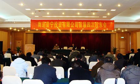 3月9日下午,普寧投資公司首屆四次股東大會(huì)在南京金陵之星酒店召開(kāi),會(huì)議由董事長(zhǎng)于國(guó)家主持。本次大會(huì)應(yīng)到股東115人,代表有效表決權(quán)558.23萬(wàn)股。實(shí)到股東(含委托)98人,代表有效表決權(quán)523.99萬(wàn)股,占總股數(shù)的93.87%。