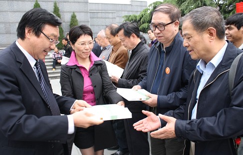 14日下午參會代表們又參觀我公司承建的魯班獎工程——“侵華日軍南京大屠殺遇難同胞紀念館”,舉行以“勿忘國恥,振興中華”為主題的研討活動。研討活動在悼念廣場舉行,館長朱成山研究員接待了各位代表,并主持默哀儀式。儀式結束后,館長朱成山發(fā)表講話,介紹了紀念館的從建館到擴建的發(fā)展歷程,并將其撰寫的散文集《文化無域》贈予各位來賓。各位代表在緬懷先烈們的同時,通過參觀紀念館對我公司的建設能力也給予了充分肯定。