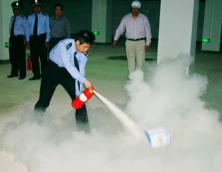 2010年5月21日下午3時整,在大廈負三樓(地下車庫)物業(yè)管理公司全體管理人員,安保隊員統(tǒng)一著裝,隊例整齊,集中于演練場地。物業(yè)管理公司張家明經(jīng)理在演練活動前,就大廈消防安全管理工作的重要性作了思想動員。講話中指出,物業(yè)管理公司組織舉辦的這項消防安全業(yè)務技能操作演練活動,是大廈整體服務與管理工作的重中之重,希望全體人員務必在思想上增強消防安全的觀念與意識,工作中提高業(yè)務技能水平,以應對各種突發(fā)事件的發(fā)生。通過綜合演練,安全人員要了解、掌握、熟知消防安全的知識,對基本的消防器材的使用需正確操作,同時牢固樹立全局觀念和團隊合作意識,為接管大廈的全面管理工作打下良好基礎。