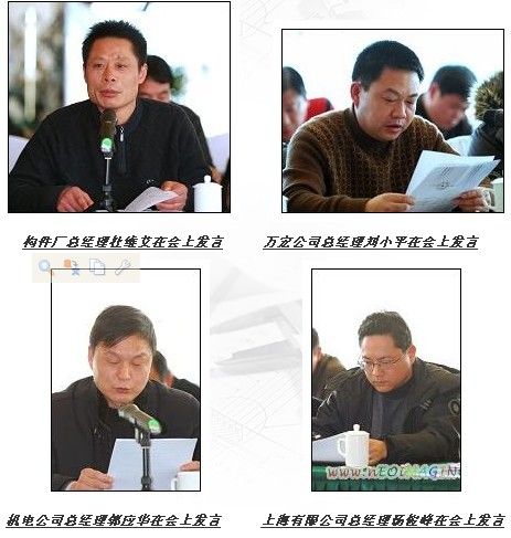最后,董事長(zhǎng)于國(guó)家同志進(jìn)行總述。他認(rèn)為這次會(huì)議召開得及時(shí)、必要,大家提出的看法比較客觀、符合實(shí)際,提出的建議絕大部分也具有建設(shè)性的意義,會(huì)議召開得非常成功,是一個(gè)務(wù)實(shí)的務(wù)虛會(huì)。在講話中于總對(duì)08年的生產(chǎn)經(jīng)營(yíng)情況進(jìn)行了總結(jié),也對(duì)08年存在的不足進(jìn)行了深刻的分析,他號(hào)召大家面對(duì)復(fù)雜多變金融形勢(shì)和市場(chǎng)形勢(shì),統(tǒng)一認(rèn)識(shí),樹立一個(gè)目標(biāo),使四大板塊齊頭并進(jìn),形成大地航空母艦。會(huì)議結(jié)束前,于總還對(duì)各基層單位做年關(guān)工作作了具體安排。