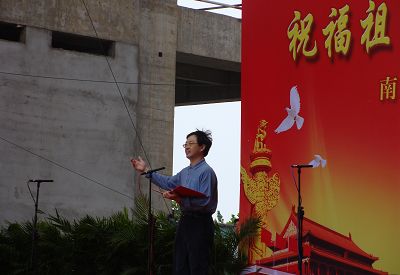 九月二十九日上午,市建設(shè)系統(tǒng)“祝福祖國美好明天,筑起南京錦繡未來”慶祝國慶60周年農(nóng)民工賽詩賽歌會,在河西十四所民用研發(fā)中心工地舉行。包括我公司在內(nèi)的來自18所農(nóng)民工業(yè)余學(xué)?傂5800名教師和學(xué)員歡聚一堂,代表全市建筑、市政、市容610所農(nóng)民工業(yè)余學(xué)校近40萬學(xué)員,為新中國成立60周年放聲高歌。