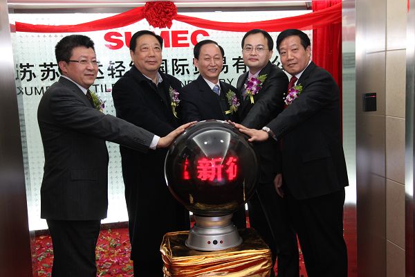 2012年2月2日,于董事長(zhǎng)應(yīng)邀參加江蘇蘇美達(dá)輕紡國(guó)際貿(mào)易公司喬遷華僑路56號(hào)揭牌儀式。