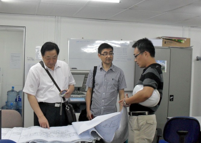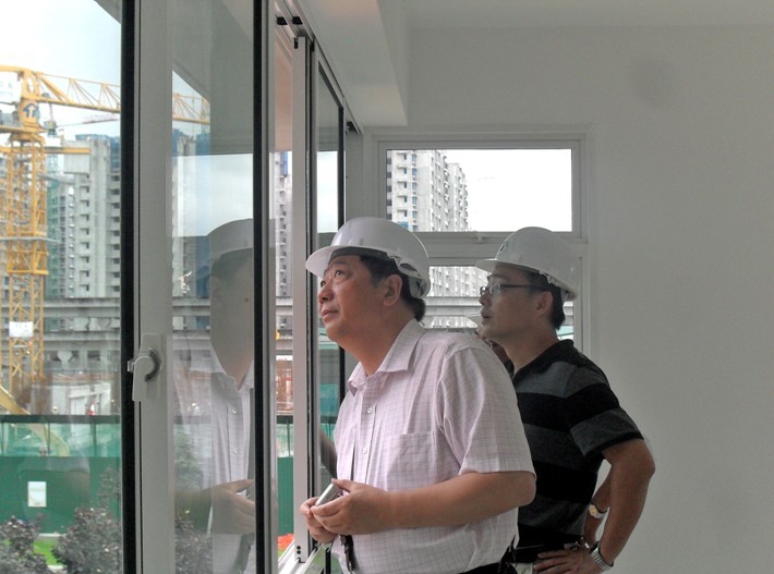 于董事長、伍總在聽取了分公司的匯報后,實地視察了建筑的樣板房和上部結構施工,全面了解了工程的施工情況,對整個現(xiàn)場的施工管理和施工質(zhì)量給予了高度的肯定,稱贊了新加坡分公司建設過程的嚴謹,同時,于董事長對一些結構細部處理及建筑施工提出了要求。