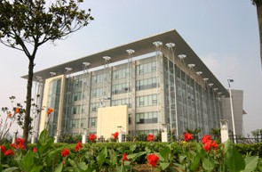 工程地下一層,地上五層,東西長136m,南北寬48m 。工程采用箱形基礎(chǔ) ,±0.00以上為鋼筋混凝土框架結(jié)構(gòu)。外墻面采用銀灰色鋁板、蜂窩石材和玻璃幕墻裝飾,整幢建筑簡潔明快,現(xiàn)代氣息強(qiáng)烈。