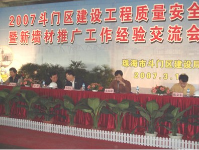2007年3月11日由珠海市斗門區(qū)組織參觀我南京大地建設(shè)紫翔項(xiàng)目部,推廣我公司的工程質(zhì)量、安全生產(chǎn)、文明施工的管理經(jīng)驗(yàn),及2007斗門區(qū)建設(shè)工程質(zhì)量安全暨新型材料推廣工作經(jīng)驗(yàn)交流會(huì),在我紫翔項(xiàng)目部召開。到會(huì)的有珠海市領(lǐng)導(dǎo)、斗門區(qū)區(qū)領(lǐng)導(dǎo)、建設(shè)局領(lǐng)導(dǎo),會(huì)上珠海分公司于國權(quán)總經(jīng)理作大地建設(shè)管理經(jīng)驗(yàn)報(bào)告,會(huì)后市領(lǐng)導(dǎo)及到會(huì)的各建設(shè)單位、監(jiān)理單位、施工單位等參會(huì)200余人員,在于國權(quán)總經(jīng)理的陪同下興致勃勃的參觀了工地,對(duì)本工地上新型材料的使用、工程質(zhì)量、科學(xué)管理、安全生產(chǎn)、文明施工現(xiàn)場(chǎng)給予很高的評(píng)價(jià),為珠海建筑業(yè)樹起了新的典型。