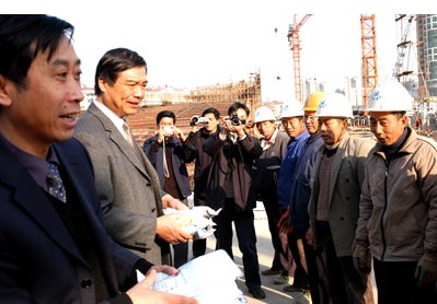 2007年1月30日,省建設(shè)廳周游廳長、徐學(xué)軍副廳長在我局賈德裕局長、余信祥巡視員的陪同下,視察了由南京大地建設(shè)集團(tuán)有限責(zé)任公司承建的侵華日軍南京大屠殺遇難同胞紀(jì)念館擴(kuò)建項目等8個建筑工程,給民工帶去新春祝福和慰問,詳細(xì)了解了民工工資支付情況,并要求各級主管部門、工程建設(shè)方和承建單位一定要從感情上貼近民工,讓他們開開心心的拿到自己的工資回家與親人團(tuán)聚。