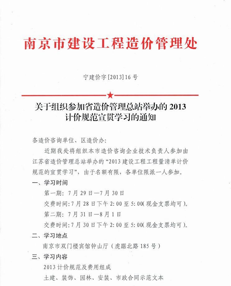 關(guān)于組織參加省造價管理總站舉辦的2013計(jì)價規(guī)范宣貫學(xué)習(xí)的通知