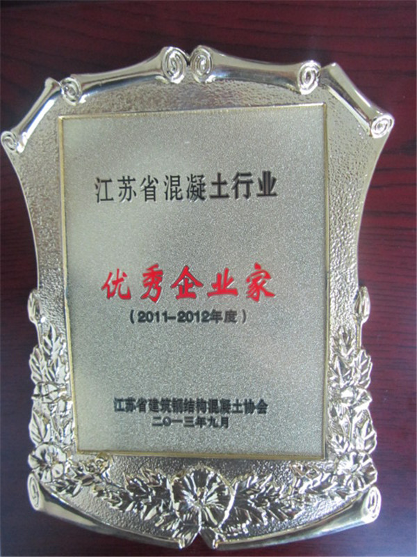2013年9月28日,南京大地建設(shè)集團(tuán)新型建筑材料有限公司被江蘇省建筑鋼結(jié)構(gòu)混凝土分會(huì)評(píng)為“2011-2012年度江蘇省混凝土行業(yè)最佳企業(yè)”,于春同志榮獲“2011-2012年度江蘇省混凝土行業(yè)優(yōu)秀企業(yè)家”稱(chēng)號(hào)。