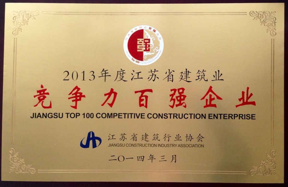 2014年3月,集團公司在江蘇省建筑業(yè)協(xié)會舉辦的2013年度“雙百強”企業(yè)評選的活動中脫穎而出,再次榮膺“江蘇省建筑業(yè)競爭力百強企業(yè)”稱號。