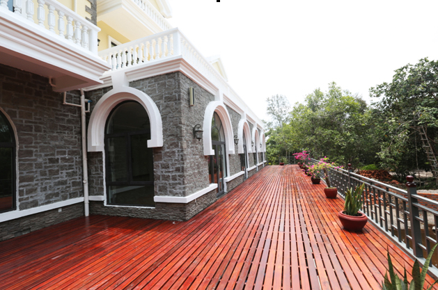 日月灣是是柬埔寨的旅游投資熱土,吸引了多方人士前來開發(fā)。我公司的賓館面積最大,檔次最高,最先具備接待能力。日月灣常年如春。別墅坐落在綠樹環(huán)抱之中,離海邊僅50米,憑窗望去,一望無垠的大海盡收眼底。別墅外觀歐式風(fēng)格,上部奶黃色涂料,下部文化石鑲嵌,屋面紅色琉璃瓦陽光下熠熠閃亮,內(nèi)部裝修全部是從國內(nèi)運來的高檔材料,8頭和10頭的紫銅色吊燈富麗堂皇,全套紅木家具頗顯東南亞風(fēng)格。