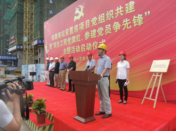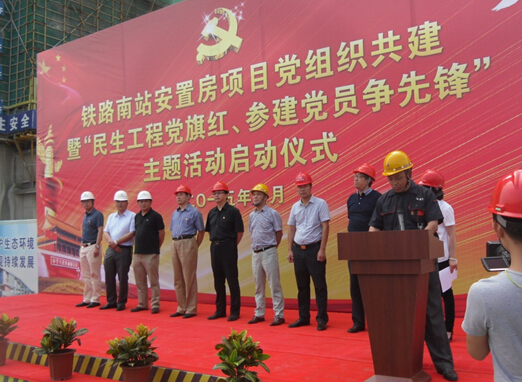 為推進(jìn)基層黨組織建設(shè),在南京交通投資置業(yè)有限公司黨總支的倡導(dǎo)下,2015年 7月1日我們偉大的黨94周年生日之際,股份公司黨委、中交四公司黨組織、黑龍江建工黨組織,在中交龍西項(xiàng)目部隆重舉行了鐵路南站安置房項(xiàng)目黨組織共建 “民生工程黨旗紅、參建黨員爭先鋒”主題活動(dòng)啟動(dòng)儀式。