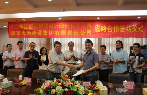 7月9日,南京大地建設(shè)集團(tuán)和南京長(zhǎng)江都市建筑設(shè)計(jì)有限公司戰(zhàn)略合作框架協(xié)議簽字儀式在集團(tuán)28樓會(huì)議室舉行,伍貽安總裁和汪杰董事長(zhǎng)分別代表兩家單位在協(xié)議書上簽字。
