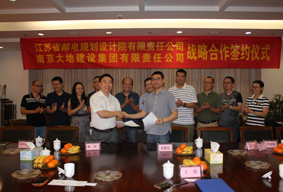 9月11日,南京大地建設(shè)集團(tuán)和江蘇省郵電規(guī)劃設(shè)計院建立戰(zhàn)略合作簽字儀式在集團(tuán)28樓會議室舉行,伍貽安總裁和戴源總經(jīng)理分別代表兩家單位在協(xié)議書上簽字。