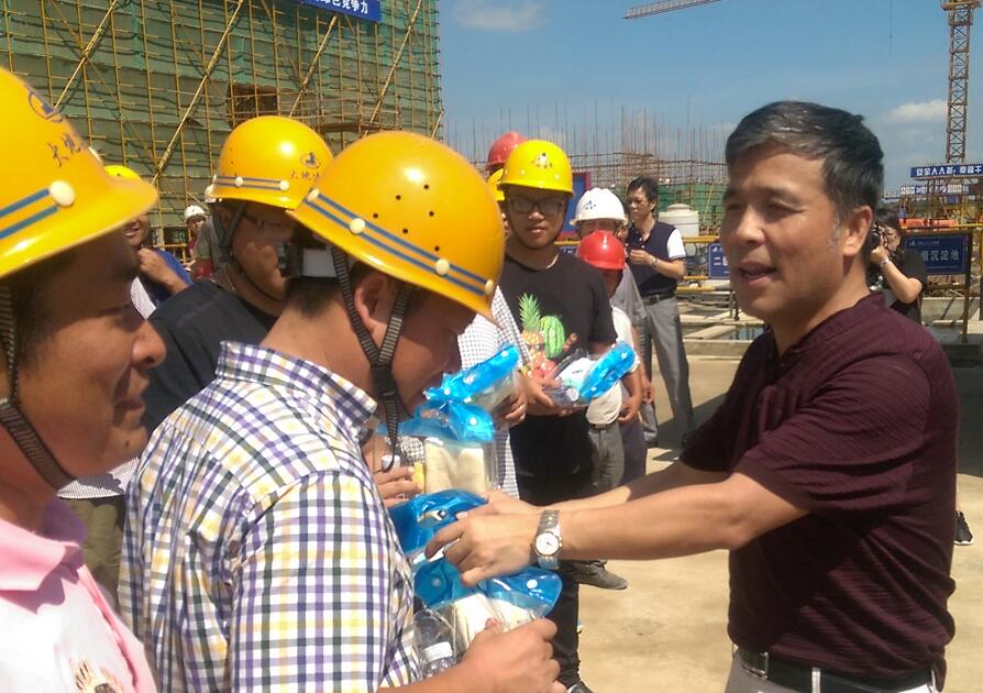 出梅后,南京進入持續(xù)35-38C度的高溫天氣。股份公司各項目部高度重視防暑降溫工作,合理安排工作時間,工人們揮汗奮戰(zhàn),高溫下堅守。高溫牽動著集團和股份公司領(lǐng)導的心,7月29日、8月2日兩天集團公司和股份公司領(lǐng)導頂著烈日,到股份公司堯辰路項目、世貿(mào)項目、溧水項目等工地慰問一線員工,開展夏季送清涼活動。