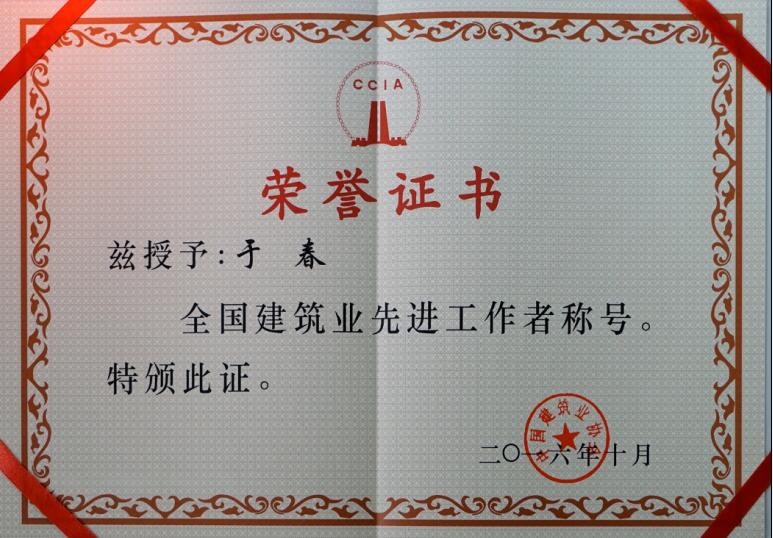 為紀(jì)念中國建筑業(yè)協(xié)會(huì)成立30周年,交流建筑業(yè)改革發(fā)展經(jīng)驗(yàn),展示改革開放以來中國建筑業(yè)輝煌業(yè)績(jī)。2016年10月31日,中國建筑業(yè)協(xié)會(huì)在北京隆重召開成立30周年暨建筑業(yè)改革發(fā)展經(jīng)驗(yàn)交流會(huì)。住房城鄉(xiāng)建設(shè)部副部長(zhǎng)倪虹、中國建筑業(yè)協(xié)會(huì)原會(huì)長(zhǎng)鄭一軍以及住房城鄉(xiāng)建設(shè)部有關(guān)司局負(fù)責(zé)同志等出席會(huì)議。中國建筑業(yè)協(xié)會(huì)會(huì)長(zhǎng)王鐵宏主持會(huì)議,吳濤等副會(huì)長(zhǎng)及各地區(qū)和有關(guān)行業(yè)建筑業(yè)(建設(shè))協(xié)會(huì)負(fù)責(zé)人、建筑業(yè)企業(yè)代表等800余人參會(huì)。我公司榮獲全國建筑業(yè)先進(jìn)企業(yè)稱號(hào),于春副董事長(zhǎng)獲全國建筑業(yè)先進(jìn)工作者稱號(hào)。