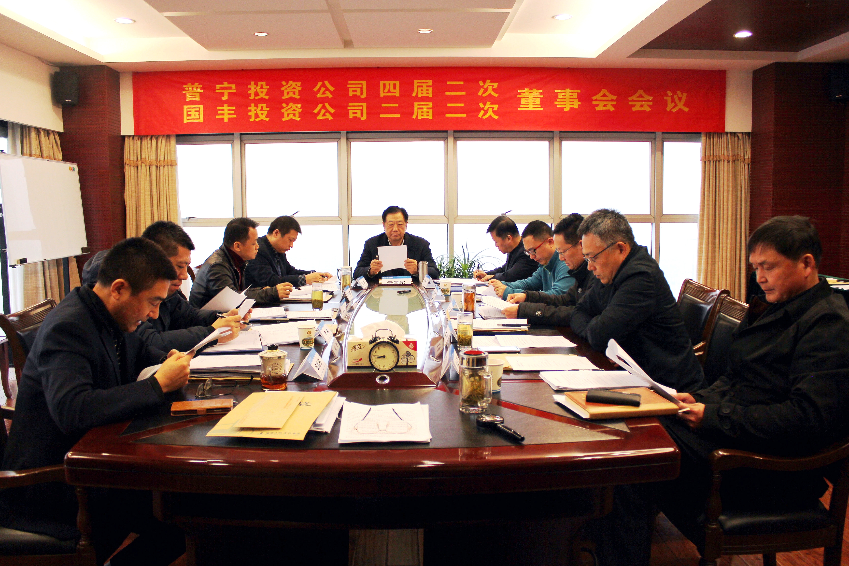 1月18日,公司在29樓會(huì)議室召開了普寧投資有限公司四屆二次董事會(huì)。會(huì)議由董事長(zhǎng)伍貽安主持,公司股東委員會(huì)主任于國(guó)家、副董事長(zhǎng)于春及全體董事出席了會(huì)議,監(jiān)事會(huì)主席郭應(yīng)華及全體監(jiān)事列席會(huì)議。