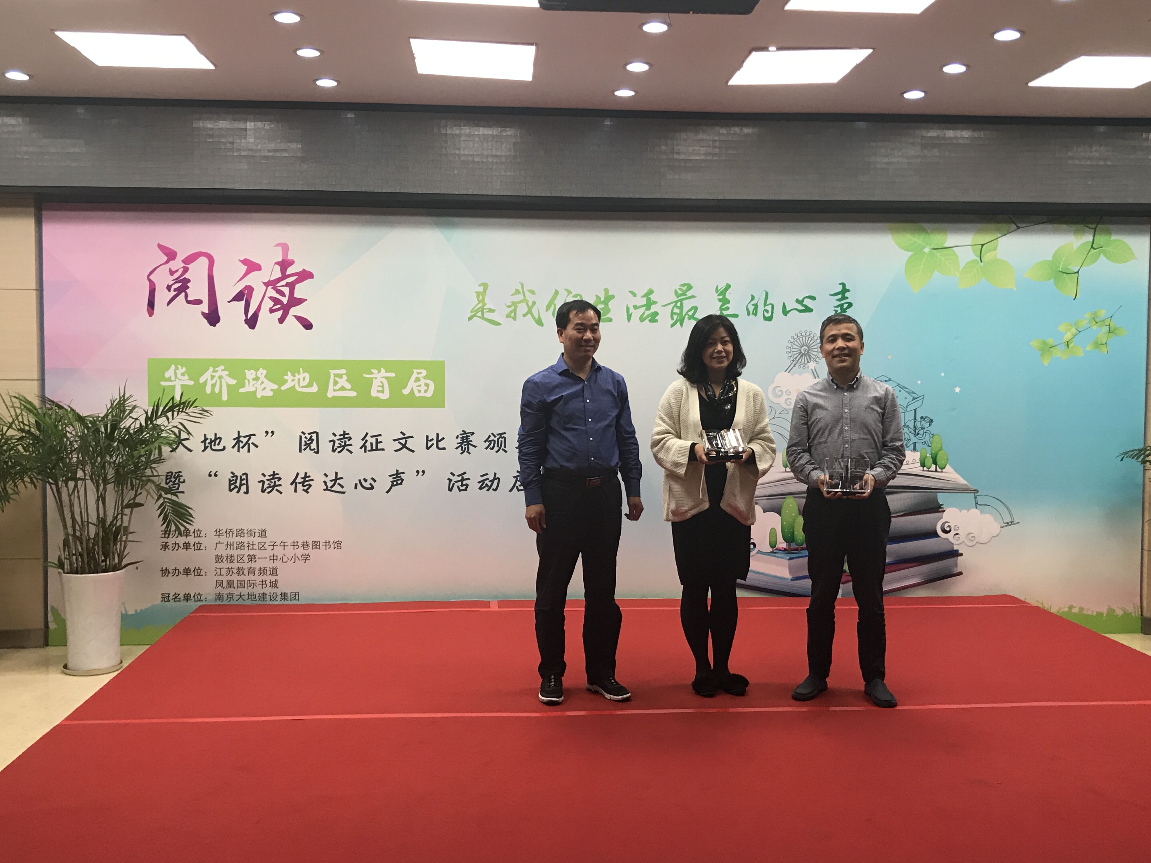 2017年4月21日下午,由我司冠名,華僑路街道、鼓樓區(qū)第一中心小學、社區(qū)子午書巷圖書館、江蘇教育頻道和鳳凰國際書城共同承辦的首屆“大地杯”閱讀征文比賽頒獎儀式暨“朗讀傳達心聲”活動正式啟動。鼓樓區(qū)委、區(qū)政府非常重視本次活動,區(qū)宣傳部、區(qū)關工委、區(qū)教育局、區(qū)婦聯等領導親臨活動現場,我司陳慶生書記擔任評委之一。