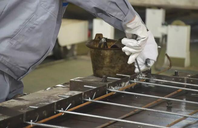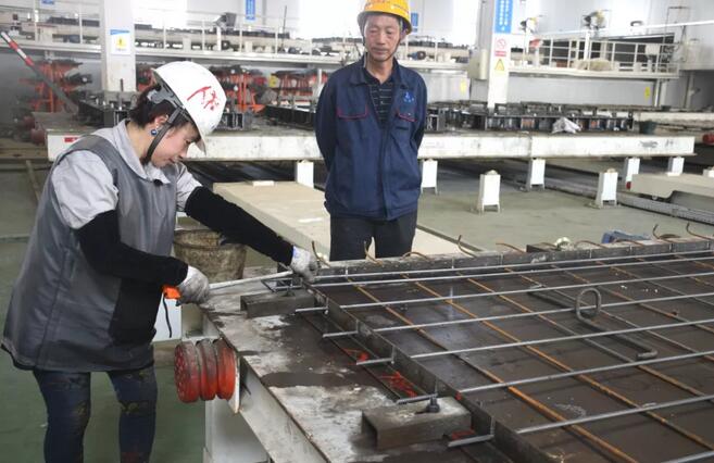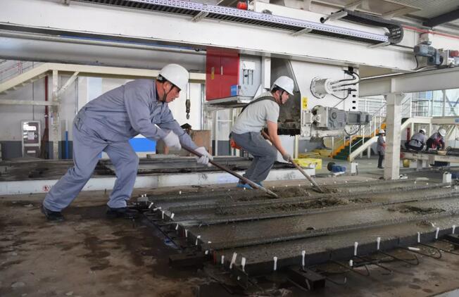 工廠里的布料機(jī)將混凝土鋪料完,振動臺振搗,使混凝土密實結(jié)合,消除混凝土的蜂窩麻面,提高強(qiáng)度。 完成這一系列工序后,張師傅又爬上了振動臺,仔細(xì)的進(jìn)行補(bǔ)料和砼表面處理。張師傅說:“以前這些工序都是手工作業(yè),用震動棒、震動平臺板,在猛烈的電動機(jī)動力下,我們工人抓它的手臂被震得特別酸麻,吃飯時都幾乎端不起飯碗來。現(xiàn)在工廠實現(xiàn)了機(jī)械化、智能化生產(chǎn),大型的振動臺,上手更快,工作強(qiáng)度也小了,比以前輕松很多。”