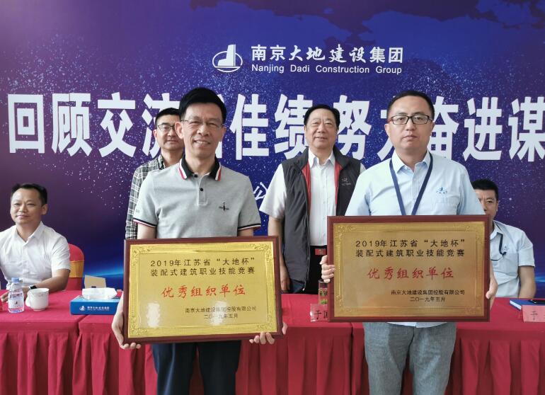 不久前,星甸工業(yè)園還成功舉辦了2019年江蘇省“大地杯”裝配式建筑職業(yè)技能競(jìng)賽暨全國(guó)總決賽江蘇預(yù)選賽,F(xiàn)代建筑業(yè)平臺(tái)共派出三支隊(duì)伍代表集團(tuán)參賽。取得了制作組第一名,裝配組第一名,灌漿組第四名的優(yōu)異成績(jī)。今天,集團(tuán)總裁江中明現(xiàn)場(chǎng)宣讀表彰決定,授予大地建設(shè)有限公司和大地建設(shè)科技公司“優(yōu)秀組織單位”榮譽(yù)稱(chēng)號(hào); 授予楊華明、張從友、孫為群、孫譽(yù)翔、梅長(zhǎng)慶、袁杰等6位同志“大地工匠”榮譽(yù)稱(chēng)號(hào);授予吳建華、史洪生等2位同志“技術(shù)能手”榮譽(yù)稱(chēng)號(hào)。集團(tuán)要求全體員工要以受表彰人員為榜樣,學(xué)習(xí)他們認(rèn)真負(fù)責(zé)、優(yōu)質(zhì)高效的工作態(tài)度,學(xué)習(xí)他們愛(ài)崗敬業(yè)、不斷學(xué)習(xí)的優(yōu)良品德,堅(jiān)持“創(chuàng)新精神”、“國(guó)展精神”、“南山精神”和“拓展精神”,為全面完成2019年各項(xiàng)目標(biāo)任務(wù),實(shí)現(xiàn)大地跨越式發(fā)展而努力奮斗!