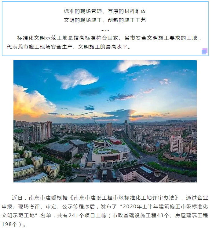 7月15日,“南京建設(shè)”微信公眾號(hào)公布了南京市“2020年上半年建筑施工市級(jí)標(biāo)準(zhǔn)化文明示范工地”名單,我司承建的南京一中分校項(xiàng)目、六合科創(chuàng)園一期項(xiàng)目、棲霞紅楓保障房項(xiàng)目、智能家居項(xiàng)目脫穎而出,榮獲該稱號(hào)!未來(lái)大地將再接再厲,再創(chuàng)精品!