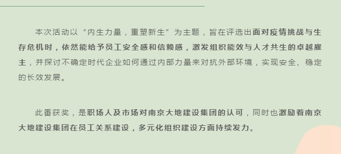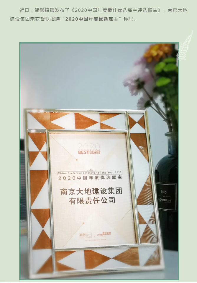 南京大地建設(shè)集團(tuán)榮獲智聯(lián)招聘 “2020中國(guó)年度優(yōu)選雇主”稱號(hào)