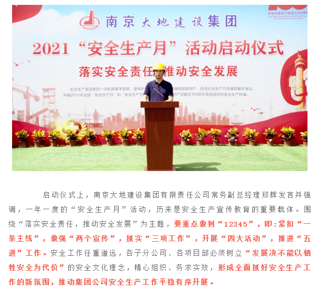 落實(shí)安全責(zé)任 推動(dòng)安全發(fā)展 | 南京大地建設(shè)集團(tuán) 2021年“安全生產(chǎn)月”活動(dòng)暨“安康杯”競(jìng)賽活動(dòng)正式啟動(dòng)