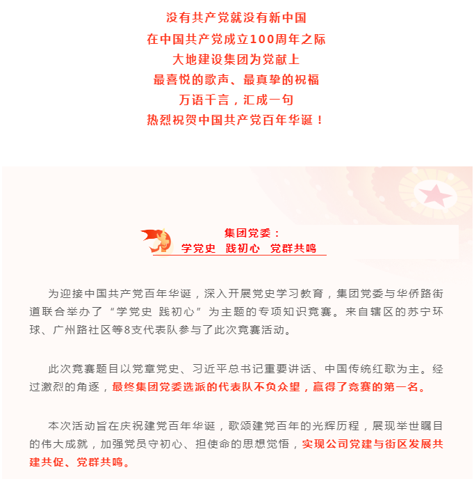 不忘初心跟黨走 一片丹心砥礪行 | 大地建設(shè)集團熱烈祝賀中國共產(chǎn)黨百年華誕!