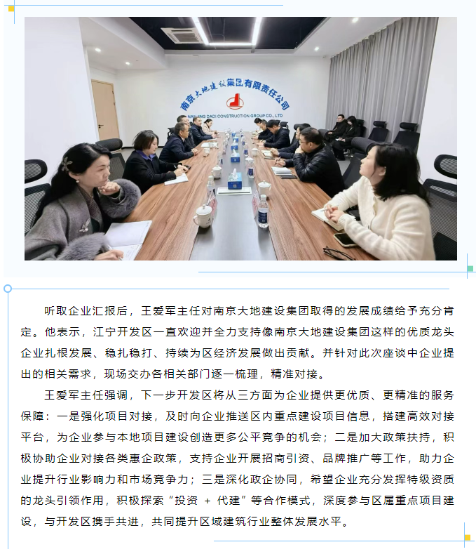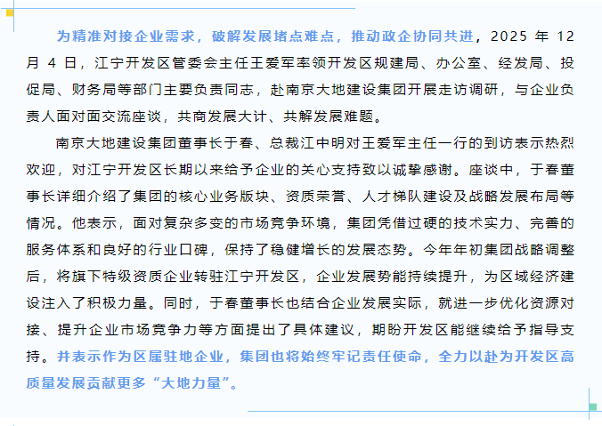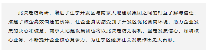 雙向奔赴 精準(zhǔn)服務(wù) | 江寧開發(fā)區(qū)領(lǐng)導(dǎo)走訪南京大地建設(shè)集團(tuán)